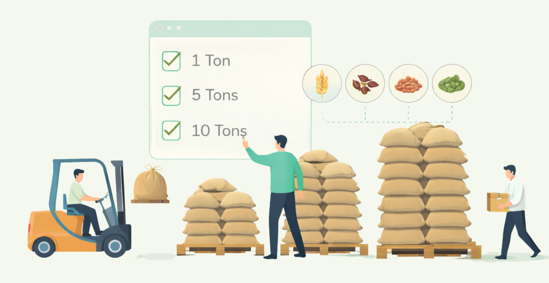 The platform enables both wholesale buyers and small-quantity buyers to source quality-verified agricultural products through a structured, transparent, and professionally managed process.